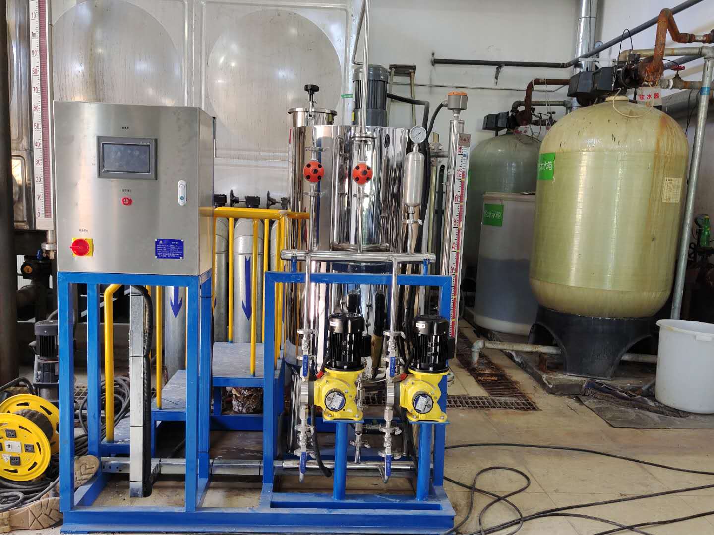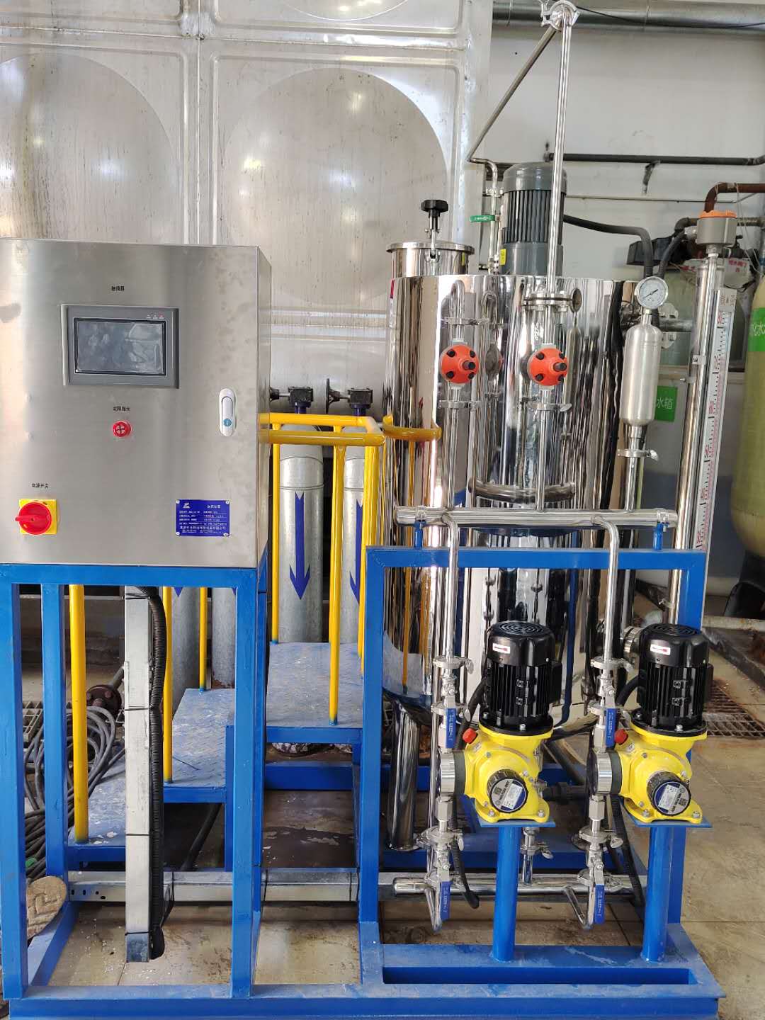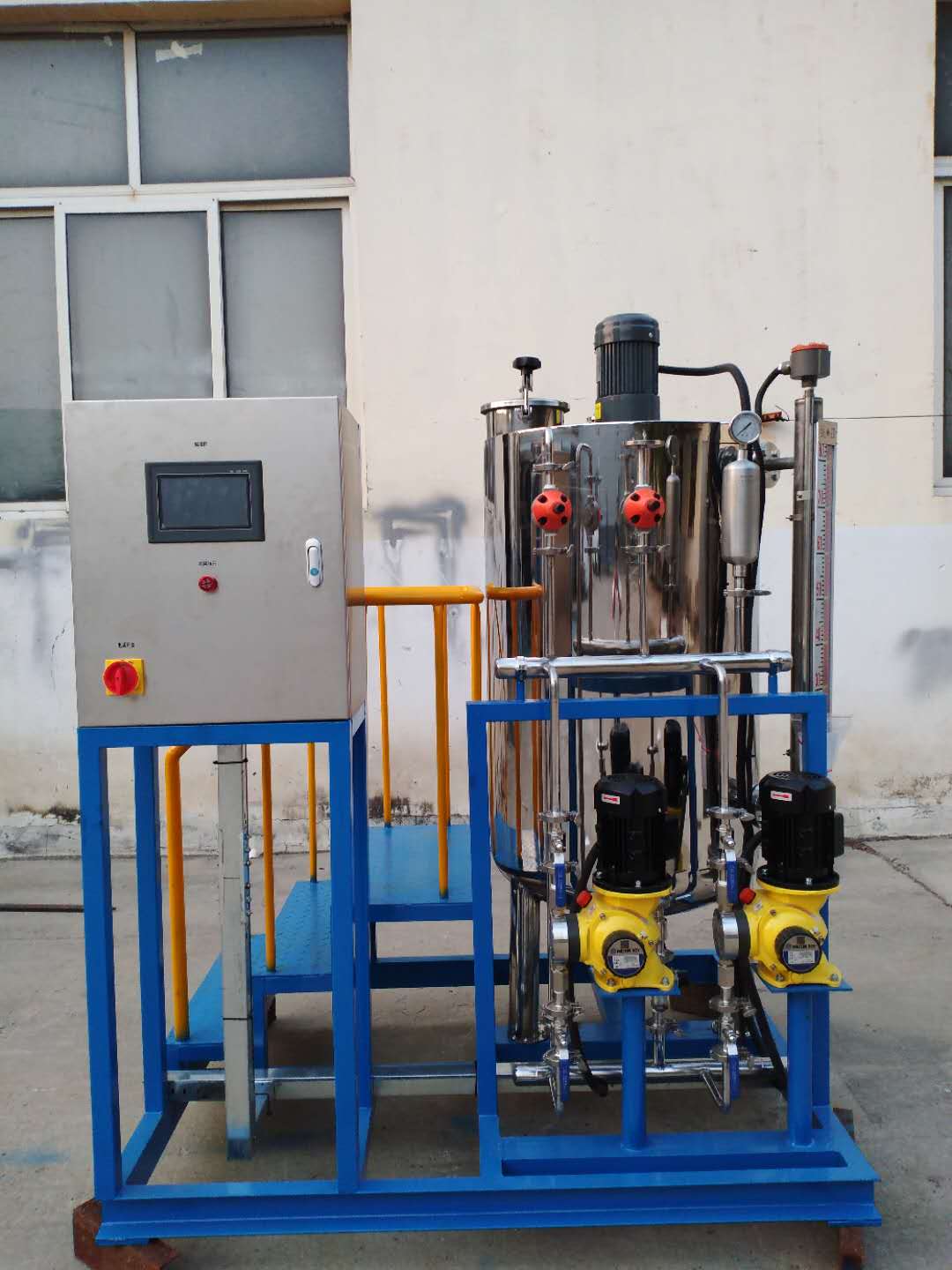 产品优势:①设备可手动/自动运行,所有信号可通过485实时数据传输,至少包括流量、电导率、运行信号、故障信号、液位信号等。②设备可根据锅炉水质化验参数和软化水制备流量变化信号自动调节计量泵,实现配比投药。流量信号与计量泵比例可以随意调整,不限于因药剂更换、水质变化等。③当计量泵发生故障时,可自动切换备用泵。并报警提示。④液位信号实时显示,低位保护泵。中位提醒配药等。⑤电导率信号生成曲线数据,数据最少保持1个月。⑥所有故障信号可追溯,数据最少保持1个月。