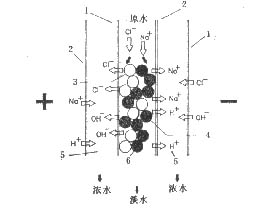 4—阳离子交换树脂;5—浓水室;6—淡水室