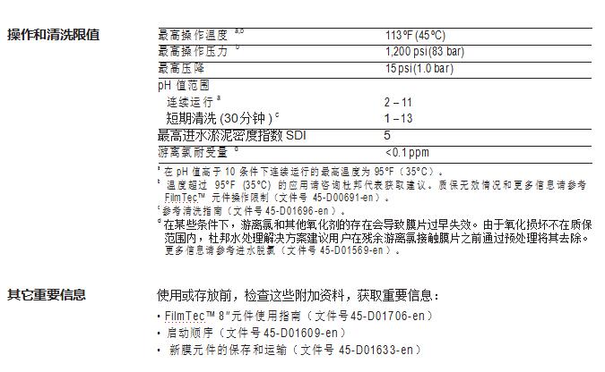 • 无需进行氧化后处理保证了在整个运行周期内都能保持高性能。FilmTec™ 元 件更耐用,且能在更宽泛的 pH 值范围(1-13)内进行化学清洗。