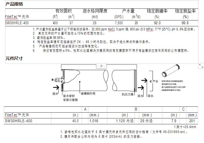 杜邦水处理解决方案提供各种优质海水反渗透(RO)元件,旨在降低海水反渗 透系统的投资成本及运营成本。FilmTec™ 膜元件结合了优异的膜性能和自动化 精密制作工艺,能提供稳定可靠的性能。