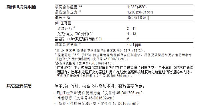 • 无需进行氧化后处理保证了在整个运行周期内都能保持高性能。FilmTec™ 元 件更耐用,且能在更宽泛的 pH 值范围(1-13)内进行化学清洗。