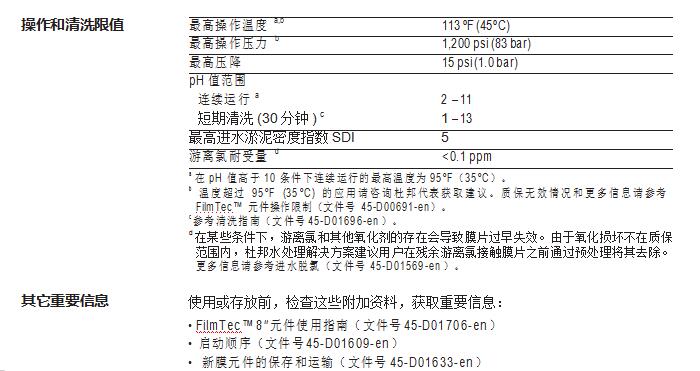 • 无需进行氧化后处理保证了在整个运行周期内都能保持高性能。FilmTec™ 元 件更耐用,且能在更宽泛的 pH 值范围(1-13)内进行化学清洗。
