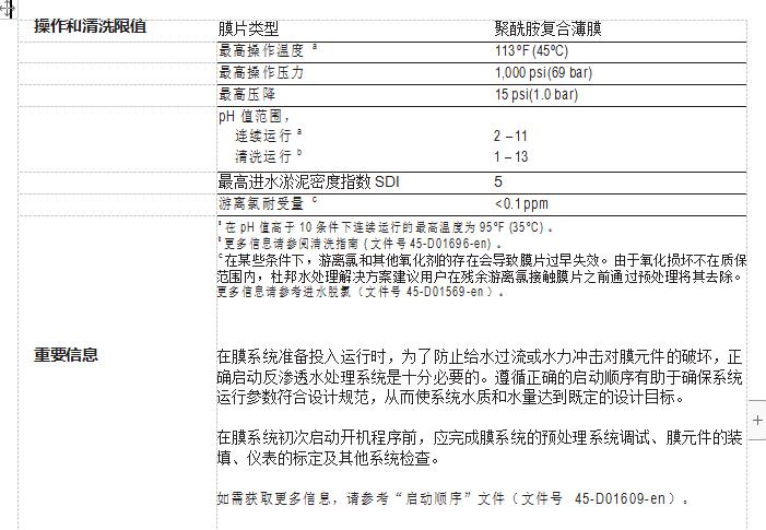 • SW30HRLE-4040 元件在制造过程中没有像其他元件制造商那样采用氧化性的 后处理工艺提高短时的初始性能,因而能在长期运行中一直保持高性能。这 是为什么 FilmTec™ 膜元件比其他品牌经久耐用,可在更宽的 pH 范围(1~13) 内进行更有效的化学清洗的关键原因之一。