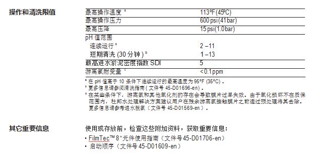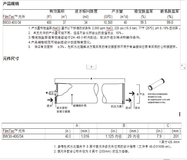 FilmTec™ BW30-400/34 元件经证明,具有优异的性能:
