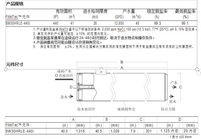 FilmTec™ BW30HRLE-440i 元件经证明,具有优异的性能:
