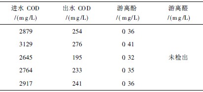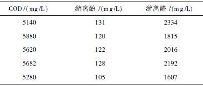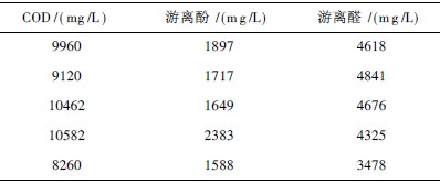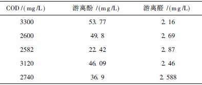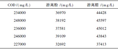 废水来源于浙江嘉民塑胶有限公司酚醛树脂生产废水,原水CODcr 为200000 ~250000mg /L,苯酚含量为30000 ~55000mg /L,甲醛含量为40000~60000m g /L,pH 为1. 5~1. 7。