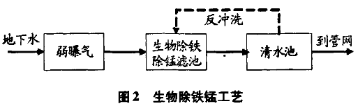 (4)生物除锰法 人们很早就认识到微生物对铁锰的氧化作用,但是把微生物引入到地下水除锰领域的历史并不长。生物法除铁、除锰作为一种新的工艺也开始在一些国家研究推广,如法国、德国、保加利亚等国家都有应用,均取得良好效果。