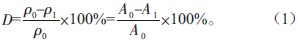 由图2 可知,溶液浓度ρ与吸光度A 表现出良好的线性关系,因此,孔雀石绿溶液的脱色率D 可由式(1)得出: