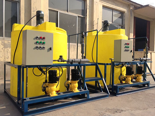 加药装置根据所需药剂浓度,在搅拌箱内配置,经搅拌器搅拌均匀后投入溶液箱、用计量泵向投药点或指定系统中输送所配制的溶液。成套加药装置具有结构紧凑、安全简单、操作使用简便等特点。加药装置还可根据用户不同工艺流程的要求,进行有针对性的设计、配置必要的部件,实现自动远程控制等功能。