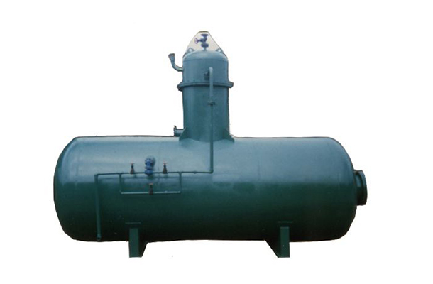 是由筒身和冲压椭圆形封头焊制成,内部设置加强圈,底座固定在预制的工作台上,一端固定,另一端为安装膨胀滚体装置。水箱上设有检修人孔、安全阀接管口、排水口、再沸腾管口、水封筒口、水位计接口、压力表口、温度表口、用水口等。