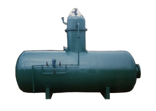 是由筒身和冲压椭圆形封头焊制成,内部设置加强圈,底座固定在预制的工作台上,一端固定,另一端为安装膨胀滚体装置。水箱上设有检修人孔、安全阀接管口、排水口、再沸腾管口、水封筒口、水位计接口、压力表口、温度表口、用水口等。
