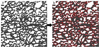图 3 原始膜孔结构(a)与聚多巴胺(PDA)镀膜后的膜孔结构(b)的比较