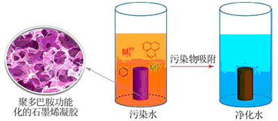 图 5 聚多巴胺功能化的石墨烯凝胶用于污水净化的简易图示