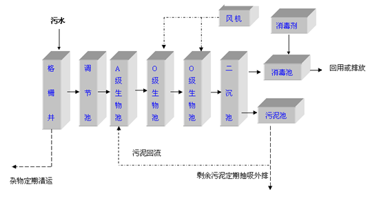 1.主体工艺为“A/O/O生物接触氧化”工艺
