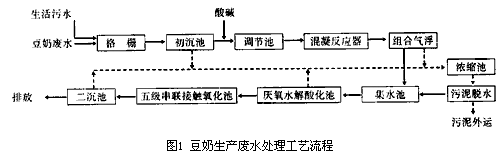 处理水量:300 m3/d,其中豆奶生产废水250 m3/d,生活污水 50 m3/d。