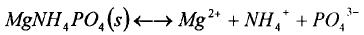该法的独特优势是生成的沉淀物MgNH4PO4,是一种农作物所需的复合肥料,因而利用该法可达到废物回用的目的。除去氨氮的反应机理如下: