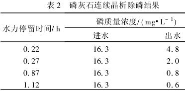 从表2可以看出,以磷灰石为晶种,当进水中磷质量浓度为16.3mg/L时,要使出水中磷质量浓度达到2.0mg/L以下的国家排放标准要求,水力停留时间约需0.27h;而【生活污水处理设备】以MgNH4PO4•6H2O为晶种,进水中磷质量浓度为18.68mg/L时,将其静置2.7h,水力停留时间只需0.1h左右就可达到该标准。单从这一点来看,后者就比前者提高处理能力2.7倍。若维持同样的停留时间0.27h,则处理后水中的磷浓度会更低。