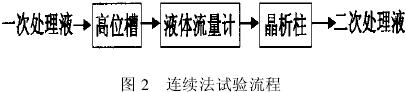 a)用化学沉淀法处理高含磷废水时,一次处理液中的磷浓度不能达到国家Ⅱ类水排放标准。我们以化学沉淀所得的MgNH4PO4•6H2O为晶种,采用晶析法辅助化学沉淀法进行处理,试验表明,连续法优于间歇法。采用连续法时,一次处理液放置时间2.7h,水力停留时间维持在0.1h左右,二次处理液的磷浓度就可以达到国家Ⅱ类水排放标准。