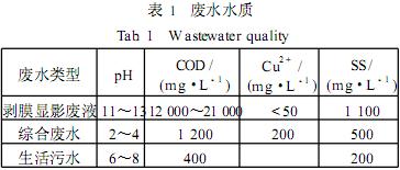 广东省某印刷电路板厂在生产过程中排放的废水种类复杂,根据水质特点进行分类收集,废水水量为:剥膜显影废液为150m3/d,生活污水量为300m3/d,综合废水量为1500m3/d。废水水质见表1。