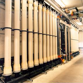 膜生物反应器是一种高效膜分离技术与活性污泥法相结合的新型水处理技术。中空纤维膜的应用取代活性污泥法中的二沉池,进行固液分离,有效的达到了泥水分离的目的。充分利用膜的高效截留作用,能够有效地截留硝化菌,完全保留在生物反应器内,使硝化反应保证顺利进行,有效去除氨氮,避免污泥的流失,并且可以截留一时难于降解的大分子有机物,延长其在反应器的停留时间,使之得到比较大限度的分解。应用MBR技术后,主要污染物的去除率可达:COD≥93%、SS=100%。产水悬浮物和浊度几近于零,处理后的水质良好且稳定,可以直接回用,实现了污水资源化。