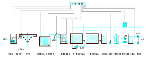 生物曝气滤池(Biological Aerated Filter)简称BAF,是80年代末在欧美发展起来的一种新型生物膜法污水处理工艺。该工艺具有去除SS、COD、BOD、硝化、脱氮、除磷、去除AOX(有害物质)的作用,其特点是集生物氧化和截留悬浮固体与一体,节省了后续沉淀池(二沉池),其容积负荷、水力负荷大,水力停留时间短,所需基建投资少,出水水质好:运行能耗低,运行费用省。