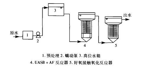 UASB+AF复合厌氧工艺具有水力停留时间短,处理效果好的特点,尤其对于高、中浓度的有机废水,是一种先进、高效的厌氧处理工艺。UASB+AF复合厌氧工艺流程图如下: