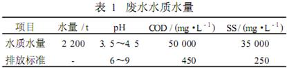 该企业废水主要来自于粗馏塔酒糟废水、精馏塔余馏水等废水,废水水质和水量如表1所示。设计出水水质须达到当地城市污水处理厂接管标准。