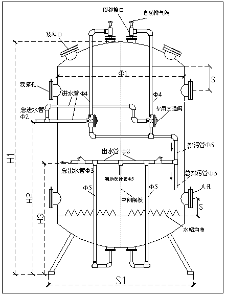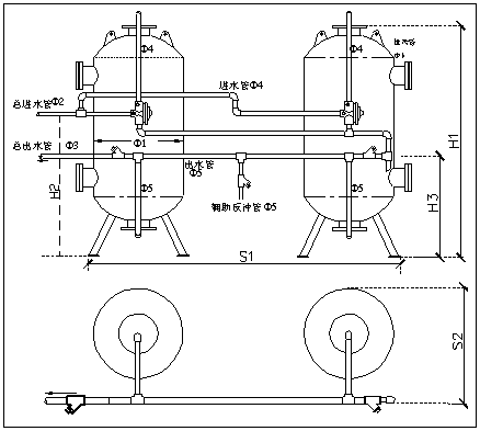 标准系统的优异的反冲洗强度、产水量等水流特性使过滤器工作于稳定状态下;较大的进出水及排水口可提供大的冲洗强度,以较少的水耗得到较好的冲洗效果;系统设计时配用了专用的排气阀,可将运行时带入罐内的气体及时排出,减少气体对设备运行及反冲洗的影响,提高设备运行的稳定性;系统采用手动控制或压差表自动控制,可以实现无人值守;标准系统均为双罐并联设计,可以随时向后级系统连续供应合格水;设备自动采用无氧水进行反冲洗,进一步提高反冲洗效果,降低水耗及除氧剂消耗;系统采用模块化设计,可以根据需要增加罐体以达到更高的产水量。