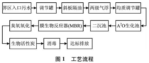 根据文献资料并结合项目现场开展的中试试验结果,确定本次升级改造工艺:界区入口污水经原有调节罐调节,而后依次经斜板隔油、两级气浮去除石油类;气浮出水经泵提升至新增的 BAF,其出水经泵提升至升流式水解酸化罐(原均质罐改造);水解酸化出水依次经原有 A2O生化池、二沉池及 MBR;MBR出水经泵提升至臭氧催化氧化塔(原臭氧氧化塔改造),其出水依次经生物活性炭、消毒后达标排放。升级改造后流程见图 11。