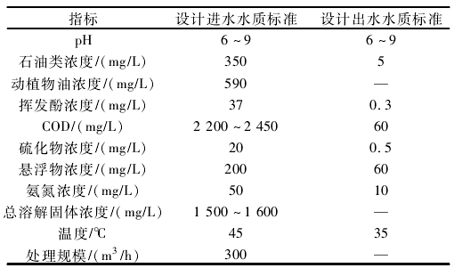 炼油厂各生产装置排放的含油、含盐污水经收集排放至污水处理厂混合后集中处理,污水处理厂设计进出水水质标准见表1。