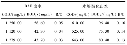 BAF和水解酸化出水 COD、BOD5检测结果见表 2。
